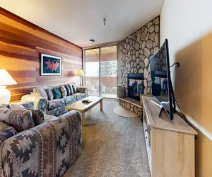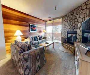 This pet-friendly, 2 bedroom, 2 bathroom condominium in Mammoth Lakes California offers incredible views of the Sherwin Mountains and sleeps four to six people. SKI-IN and SKI-OUT to the lifts from this prestigious complex and enjoy a wonderful stay in a spacious condominium with a southwestern flair. The living area features a wood-burning fireplace, Queen sleeper sofa, large deck, Flatscreen TV with Blu-Ray DVD player, private washer/dryer, and Wireless Internet access. The master bedroom has a King bed, flatscreen TV with DVD player, deck access and private full bathroom. The second bedroom features 2 Twin beds with a shared bathroom. All Mammoth Sierra guests receive complimentary full access to Snowcreek Athletic Club to enjoy facilities including indoor heated pool, steam/sauna, full fitness facility, yoga, pilates, cycle studio, and more.