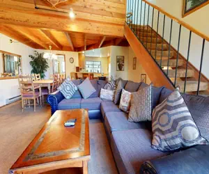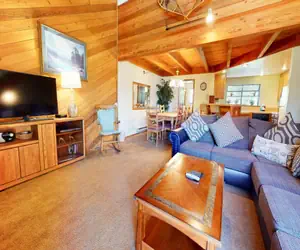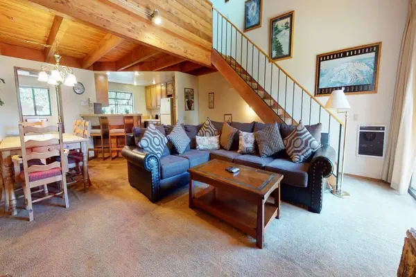 This nicely decorated 2 bedroom plus loft 3 bathroom townhouse in Mammoth Lakes California is located near town and the Snowcreek Golf Course. On the winter shuttle route and walking distance to the meadow and fishing stream and sleeps 8 people. From the deck, this condo has lovely views and the Snowflower complex offers a great outdoor pool (Summer only), spa, sauna, laundry facilities and tennis. The living area features a large comfortable section so all of the family can cozy up around the wood burning fireplace. The open plan kitchen and dining area allows for great social evenings with dining for 8 and high counter bar stools for additional seating for 2. Equipped with a large flatscreen TV with cable and a full bath on this level. The upstairs loft is a great hang out for singles or kids offering 2 twin beds and one trundle day bed (with two twins) for a total of 4 twins. The master bed features a Queen bed and full en-suite bath. The second bedroom on the downstairs entry level features a Queen bed and full bath. All guests receive complimentary full access to Snowcreek Athletic Club to enjoy facilities including indoor heated pool, steam/sauna, full fitness facility, yoga, pilates and cycle studio and more. Approx 1450 sq. ft, this 3 level townhome sleeps a Maximum Occupancy: 8. Guests will be provided two parking passes. If more parking is required than what is allotted, feel free to call our office for alternative options. Our calendar is updated in real time. (Property Certification #: TOML-CPAN-13803) Unit Code = SNF74