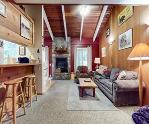 Escape to the mountains in this cozy 1-bedroom + loft, 2-bathroom condo, perfect for couples or families up to 6. This inviting home features a spacious living area with vaulted ceilings, a large Smart TV, WiFi, and a wood-burning fireplace for cozy evenings in. The fully equipped kitchen boasts stainless steel appliances and opens to a dining area that seats 6, with 3 additional seats at the bar. The primary bedroom offers a queen bed, Smart TV, and private vanity, while the upstairs loft includes two more queen beds, a TV, and shared full bathroom. A queen sofa bed in the living room adds extra sleeping space. Guests enjoy complimentary access to Snowcreek Athletic Club, featuring an indoor heated pool, sauna, fitness center, and more. Located on the shuttle line for easy lift access and is walking distance to retail, dining and grocery options. This two-level condo includes two outdoor parking spaces, if more parking is required than what is allotted, feel free to call our office for alternative options. There are 15 steps to this unit, 2 levels inside, and no smoking or pets are permitted. Our calendar is updated in real time. (Certified Property #: TOML-CPAN-16502) Unit Code = HZ4120