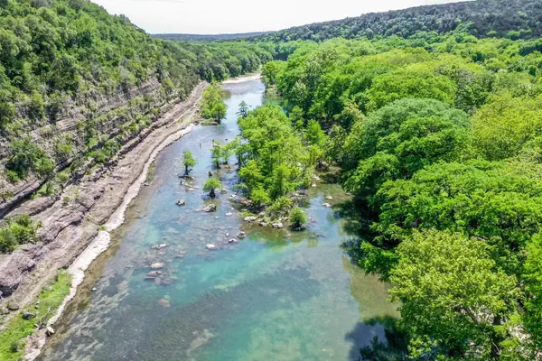 The beautiful Guadalupe River is 130 yards from the backdoor of the home, and there is a gravel road you can drive down 93 yards to alleviate some of the walking!