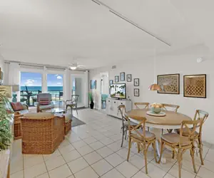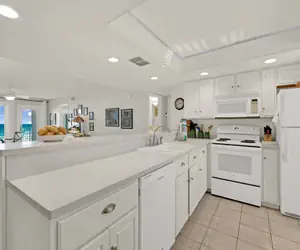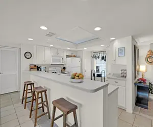 Step into a bright, spacious retreat with an extra-wide living room and open kitchen, giving everyone room to spread out, relax, and make memories. Tastefully decorated with comfortable furnishings, original artwork, and inviting coastal vibes, this updated condo feels like your home away from home. The deep balcony is a guest favorite: enjoy outdoor dining at a beautiful mesquite table, then lounge in folding chairs while watching dolphins dance in the waves.