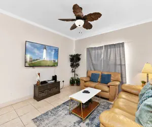 Inside, you'll find a warm, welcoming layout with a Fully Equipped Kitchen for easy meals, a spacious living area, and TVs in each bedroom for relaxing evenings. The primary bedroom features a king-size bed, while the guest bedroom includes both a full and twin bed, providing flexible sleeping arrangements.