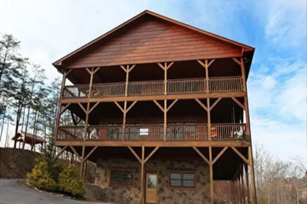 Come on over to Pigeon Forge, Tenn. and stay in the unforgettable cabin called "Party Hut" located in the Starr Crest Resort. Just minutes from Dollywood and The Great Smoky Mountains here in Pigeon Forge, Tenn. Invite all the family and even your close friends. This cabin has it all with 4 King size beds, Twin Bunk beds, 1 twin full Full Bunk, and 3 sleeper sofas that accommodates 18. Decide who gets the Master King with its own private jacuzzi tub and hot tub! Each bedroom has fantastic mountain views, and satellite TVs with DVD/VCRs. There are 3 levels of private covered porches to take the beautiful mountain views in. Take a dip in one of the 2 hot tubs. What a way to unwind from an exciting day at Dollywood or Gatlinburg. Gather on the main level with fireplace and stereo, 52" satellite TV, or go to the second level where there is a 60" satellite TV, stereo, and a mini-kitchen with a dining table and a bar. There is also a complete theater room with surround sound and a game room with a pool table and lots of other games. Or, just relax at the resort seasonal pool with a children's play area and the picnic pavilion. Come stay with us at The "Party Hut" and make your dream vacation come true!