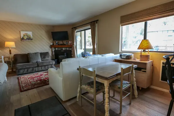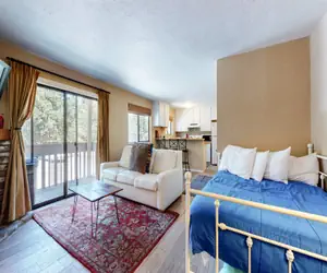 This cozy studio, 1 bathroom condo packs a big punch with sleeping arrangements for up to 5... value doesn't get better than this! The condo comes with a full size kitchen, dining area with seating for 5, a TRUE soaking tub, and forest setting views. There is a Full size Tempur-Pedic bed in the condo with a Twin trundle underneath, as well as a California King size Tempur-Pedic sofabed. Enjoy the cozy pellet stove in the living room, and a full kitchen to prepare meals and snacks. The La Vista Blanc complex has an outdoor pool (Summer only), Jacuzzi and public gas grill for your use and is conveniently located on the shuttle route, and with hiking trails leading directly from the complex. It is centrally located with a short walk to Groceries, Coffee Shops, Restaurants & Shops. Just 100 yards from the Mammoth Creek park, you can fish the creek, use the playground or picnic at the tables or large grassy area or enjoy the Mammoth Community Rec Zone or LA Kings Ice that offers a host of activities and year-round recreation opportunities. There is also EV car chargers available for free use at the Rec Zone. This condo sleeps a maximum of 5 people and comes with 2 outdoor parking spaces, a portable private gas grill and a guest ski locker. All guests receive complimentary full access to Snowcreek Athletic Club to enjoy facilities including indoor heated pool, steam/sauna, full fitness facility, yoga, pilates and cycle studio and more. Guests will be provided two parking passes. If more parking is required than what is allotted, feel free to call our office for alternative options. There are 7 stairs to this unit, no stairs inside, and no smoking or pets are permitted. This TV has basic cable and a smart DVD player where you can access apps such as HBO, Netflix and log in with your account to view movies etc. Our calendar is updated in real time. . (Certified Property #: TOML-CPAN-13951) Unit Code = LVB061