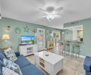 With just steps to the beach The Villas are a perfect Island retreat! The Villas 2B condo is a luxurious two-bedroom accommodation with updated kitchen and many extras. This one of only six units in The Villas complex is a newly renovated, ground level, with two bedrooms and one bathroom. A total of four guests can vacation here. Villa 2B has access to the large, shared pool, luxury kitchen, dining room, living room, Queen size bed in the master bedroom, and two Full size beds in the guest room. Loaded with many extras such as flat screen TVs, granite counter tops, stainless appliances, onsite/coin washer & dryer, and Wi-Fi internet access. There is a community grill located on site, perfect to cook up your catch of the day! Grab you towel and take the provided beach chairs and umbrella to the beach! Just cross the street and soak up the sun, enjoy the turquoise water of the Gulf of Mexico and build a sandcastle!HIGHLIGHTS • 782 sq. ft. • Shared heated community pool 40X20'• 0.5 miles from bay access • 400 ft. from beach access BEDROOMS• Sleeps 4• Primary Bedroom: Queen• Second Bedroom: Two FullBATHROOM• Primary Bathroom: Walk in ShowerEXTERIORStep outside into the private courtyard of The Villas and relax by the 20 ft. by 14 ft. pool. There is a sitting area by the condo to dine in or spend time with the family. The pool is heated for your convenience during the colder time. There are also 2 lounge chairs for every unit. Washer and dryer are on site so you can pack light. There is also a community grill if you plan a cookout. The beach access is just across the street.Minimum stay: 7 nights and Maximum occupancy: 4 peopleThere is one parking space assigned to the unit along with extra guest parking spots. This Condo Association does not permit motorcycles, trailers, large trucks, or RV parking.This property is protected by video surveillance. Please keep in mind that you are vacationing in a residential area. Please be a good neighbor by keeping the noise to a respectful level during the day and night. Excessive and unreasonable noise can deprive neighbors of the peaceful enjoyment of their private property. VRC16-000255