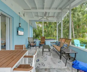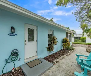The outside area is surrounded by lush tropical landscaping. There is patio furniture for lounging around and a flat screen for watching the game or entertaining. Serve dinner right from the provided gas grill. Just the perfect little spot for a fabulous Anna Maria Island vacation getaway!