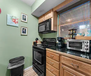 The condo features an open-concept living area perfect for relaxing after a day of exploring the area. The fully equipped kitchen comes complete with modern appliances, granite countertops, and plenty of cabinet space. The master bedroom suite includes a luxurious king-size bed, and an ensuite bathroom with a jacuzzi tub. The second bedroom with a king-size bed, offers plenty of space for a second couple or children.