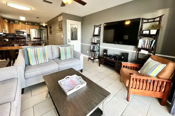 Fully tiled first floor. Fully remodeled downstairs full bath. Carpeted stairway and upstairs bedrooms. Master bedroom has private balcony and NEW 50" SMART flatscreen TV, with DVD. Parking for 4 cars (2 covered); BBQ grill on premise - large Weber. E-thermostat allows cooling to 70 deg / system disable w balcony door open > 5min.