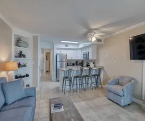 This direct gulf front condo is fully tiled with modern decor. Updated furnishings throughout including two side chairs and Capri sofa in the living room, bar stools, upgraded vanity in bathroom, and glass-top oven. Master bedroom now has blackout curtains. The private balcony, accessed from the living room, is spacious with plenty of seating. BBQ grilling area on-site. Cooking in is a breeze in your well-appointed kitchen with all appliances. Enjoy all the conveniences of home including a washer/dryer.