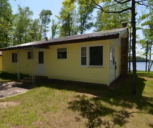 Charming, cozy 2 bedroom lake cabin rental with hard to find level lake frontage and sandy lake bottom on popular Lake Namakagon in the Chequamegon National Forest.