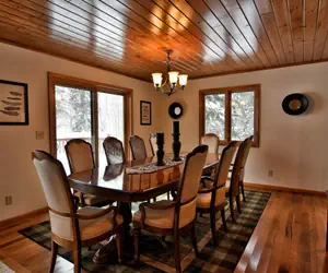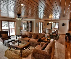 Upstairs there are three bedrooms each with a queen bed and ceiling fan along with a full bath. The main level has one bedroom with a queen bed. There is a large family room with TV downstairs and a second full bath and 2 sets of bunk beds (full sized). There is plenty of room for your group to stretch out and enjoy this comfortably furnished Lake Namakagon vacation rental!