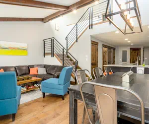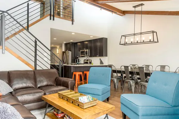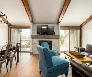 This beautiful 3-bed/2-bath townhome has an open floor plan, sleeps 8, and is conveniently located close to the mountain, restaurants, entertainment, and shopping. The second floor, entry level, offers an open-concept living area with a gas fireplace, sectional sofa, and 55" flat-screen Smart TV. The living room opens to a large deck with amazing views of Emerald Mountain and Sleeping Giant in the distance, perfect for watching the sunset! There is an adjacent dining area for 8, fully stocked kitchen, full bathroom with a tub/shower combo, and a third bedroom with dual twin over twin bunk beds. There is also a full-size washer/dryer and plenty of closet space. Upstairs you will find a well-lit loft area and soft carpet throughout, and a beautiful bathroom with a stand-up shower. The master bedroom has a king-size bed, large closet, flat-screen TV, and sitting bench. The third bedroom has a queen bed and a sitting bench.