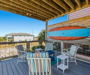 This property features a fully equipped kitchen, granite counter tops, beautiful wood floors through out, linens, washer/dryer, outside shower, single car carport, wireless, cable, patio chairs and umbrella. New large sun deck off the dining room with chaise lounge chairs to relax and enjoy the sun, patio table and chairs. You are sure to enjoy relaxing on any one of the 3 private balconies while listening to the sound of the crashing waves or enjoying the peaceful night breeze. Navarre Beach will truly be your vacation of choice after staying with us at Pelican's Roost.