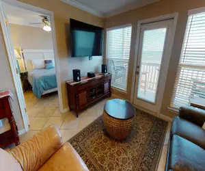 Master Bedroom: This inviting bedroom features a spacious and comfortable king-size bed, designed for restful nights and luxurious relaxation. A flat-screen TV sits conveniently in the room for entertainment. The windows showcase stunning, uninterrupted Gulf views, allowing you to wake up to breathtaking beach views.