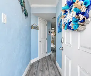 In addition to the overlooking view of both the pool and beach, both only steps away (no driving or streets to cross!), this cozy “coastal” getaway is recently beautifully updated.