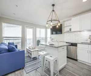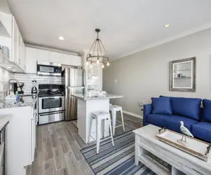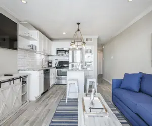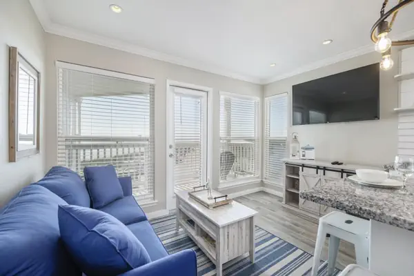 The perfect beachside getaway awaits at this cozy, recently updated Galveston vacation rental. Located just steps from the sand, it features a charming private balcony with tall patio furniture where you can unwind and take in the expansive, breathtaking views of the Gulf.