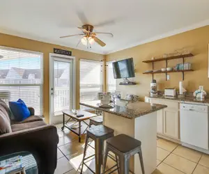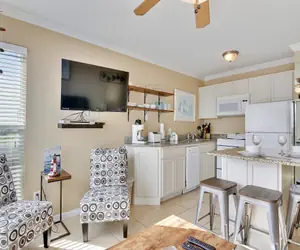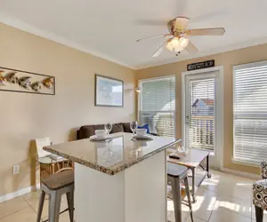 This one bedroom one bath condominium was completely renovated by the new owner and is thoughtfully decorated for guests' enjoyment. The open concept living/dining/kitchen area features an updated kitchen with Island and very comfortable bar stools. Guests will enjoy this cheery kitchen with new appliances, and gorgeous granite counters!