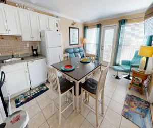 This cozy condo on the beach is perfect for a relaxing getaway! Enjoy the ocean breeze from your private balcony, where you can sip your morning coffee or unwind with a sunset cocktail. This charming retreat features a comfortable living space, a fully equipped kitchen, and all the essentials for a stress-free stay.