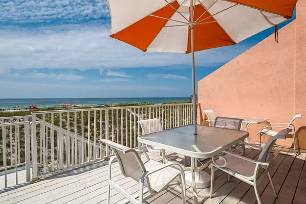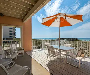 • Second floor has three bedrooms, 2 twin gulf front bedrooms with private balcony and a full bathroom tub/shower combo located in center hall.