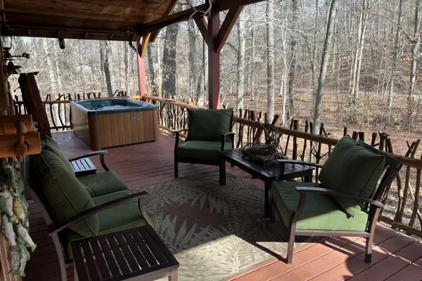 Step onto the cottage's deck, and you'll be greeted by a panorama of the surrounding woodlands. It's the perfect spot to sip your morning coffee, breathe in the pure mountain air, or immerse yourself in the tranquility of the Great Smoky Mountains.