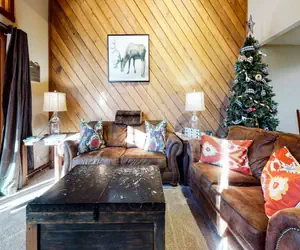 This remodeled 3 bedroom + loft, 2 bathroom spacious Townhouse in Mammoth Lakes California is located next to the Snowcreek meadow with spectacular mountain views and the creek just outside the door.