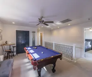This villa offers beautifully designed common areas boasting all the luxuries needed for your stay. In addition to an array of upgraded amenities such as: a private hot-tub, fiber-optic internet, pool (billiard) table, game closet, ping pong table, gas firepit, outdoor (BBQ) grill, curved HDTVs, 9’ ceilings, a gourmet kitchen with quartz countertops, and stainless-steel appliances. All chosen for your convenience and comfort during your stay.