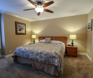 The master bedroom features a King bed, en-suite bathroom with stand up shower, and flatscreen TV. with DVD player The second bedroom is perfect for the kids and offers a Queen bed as well as bunk bed with 2 Twins and access to the shared bathroom. The living room sectional also pulls out into a King size sofabed for additional guests.