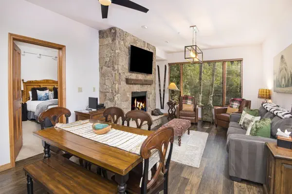 Welcome to the exclusive community of Arrowhead in Beaver Creek. The world renowned Vail Valley extends an invitation to you and yours for the adventure of a lifetime! This newly updated condominium at The Aspenwood Lodges affords the very best of both superbly well appointed accommodations and optimal accessibility. Lodge #207 is a classically furnished mountain-mod ski chalet. Wildlife photography adorns the walls of the living space and adds an element of natural authenticity. Light filled and cheery. Dark finished hardwood flooring. Comfortably carpeted bedrooms. There’s a large granite stone hearth with gas fireplace which provides the warmth of real welcome. Stellar south facing views of the Aspen-studded mountain landscape. Surprisingly spacious. Private parking for one vehicle in the heated garage.