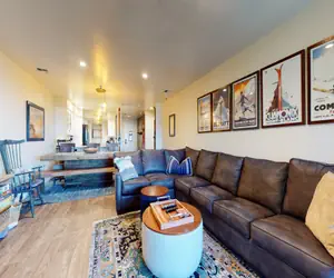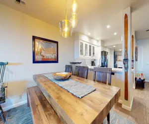 If you're looking for a condo with a modern touch, the convenience of SKI-IN, SKI-OUT access, and where fido can come along on your Mammoth vacation... look no further!! This pet-friendly, 2 bedroom, 2 bathroom condo has been completely remodeled from top to bottom and is located on the ski-in, ski-out slopes of the Bridges community. With direct access to the Bridges run, ski down to Eagle Lodge. The condo features a cozy, custom stone, gas fireplace, large sectional sofa you can just sit back and sink into, full kitchen with all new appliances and complete cookware, and even private washer/dryer. The open plan kitchen expands into a dining area with seating for 8, providing great social flow where the whole family can interact. The living area leads out onto the expansive outdoor deck with beautiful unobstructed views of the surrounding mountains and valley all the way to Crowley Lake. The master bedroom has a King bed, custom built-in shelving system, flatscreen TV, private en-suite bathroom and access to the outdoor balcony. You get to wake up to that view! The second bedroom features a Queen bed and flatscreen TV with access to the hall bathroom located right outside the door. The sectional in the living room also pulls out into a sleeper sofa for additional guests. This property is one of only a few TRUE ski-in, ski-out locations in Mammoth and is located on the second floor with elevator access. The property also comes with a private ski locker to store all of your equipment. If you are traveling with littles, feel free to request a travel crib/pack-n-play from us and we will make sure it is in the unit for your arrival. All guests receive complimentary full access to Snowcreek Athletic Club to enjoy facilities including indoor heated pool, steam/sauna, full fitness facility, yoga, pilates, cycle studio, trampoline room and more. This Mammoth condo sleeps a maximum of 6 people and comes with covered garage parking (clearance 6' 10") for two vehicles. Guests will be provided two parking pass. If more parking is required than what is allotted, feel free to call our office for alternative options. There are no stairs to this unit, no stairs inside, and no smoking permitted. Our calendar is updated in real time. (Property Certification #: TOML-CPAN-13870) Unit Code= BRC209