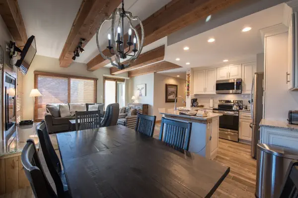 Please note that the resort fee is included in the rate you see. This exquisitely newly remodeled 5th floor 2 bedroom 2 bathroom residence offers incredible views of Mt. Crested Butte. An electric fireplace is the focal point of the living room, while the mountain chic décor gives you an elevated ski lodge experience. The kitchen is appointed beautifully with stainless steel appliances, granite countertops, and new cabinetry. Sleeps 5 comfortably with a King bed in the master, 2 twins in the guest room, and a twin sized luxury roll-away located in master bedroom closet. Comfortable Adirondack chairs on the private balcony allow you to soak in the amazing unobstructed view of Mt. Crested Butte. Full laundry facilities in the unit.