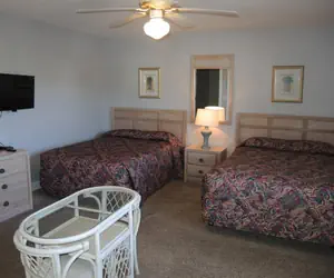 Unit 1005L, located in Commons I, is a second floor (no elevator), studio unit and sleeps a maximum of 4 people. This unit has 2 double beds in the bedroom. Cable TV, air conditioning, ceiling fans, coffee maker are included.