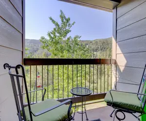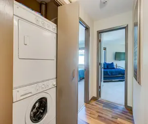 This spacious 2 bedroom condo at Frostfire is walking distance to the lifts and has great amenities! As soon as you walk inside, you will immediately want to kick your shoes off, sit down on the couch and enjoy the warmth coming from the gas fireplace. This two bedroom condo features comfortable furnishings throughout, including a sofa sleeper in the living room. Along with ample seating options, you and your family can easily enjoy some down-time together after a long day of adventuring in Keystone. Just off of the living room, there is a dining table which seats six people with four additional seats at the breakfast bar. Walk out onto the balcony from the dining area and enjoy beautiful views of the Keystone slopes and Peru chairlift. The kitchen is fully stocked with everything you will need to cook meals while you are staying in Keystone. There is a private stacked washer and dryer for your convenience.