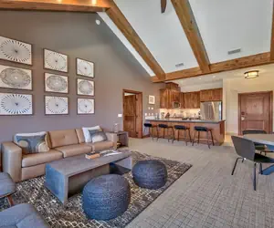 The living room offers a cozy yet open atmosphere offering plenty of seating for your guests. Relax on your private balcony where you can enjoy morning coffee or apres-ski refreshments.
