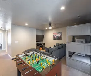 The spacious floor plan ensures quiet and private bedrooms, allowing you to relax and enjoy your stay. Whether unwinding in the contemporary-style bedrooms, taking in the scenic views from the partially covered upper deck balcony, or spending quality time with family and friends in the two family/recreation rooms, Desert Escape provides comfort and convenience. Don't miss the opportunity to witness breathtaking sunrises from the back patio overlooking the golf course.