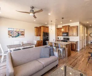 Desert Escape is a beautiful 1,812 sq foot home featuring 3 bedrooms and 3.5 bathrooms, situated on the 18th hole of the Ledges Golf Course. This luxury villa is adorned with all the upgrades you could desire, including flat-screen HDTV's, granite countertops, and a high-speed internet connection with the fastest possible speed (1Gig Fiber Internet).