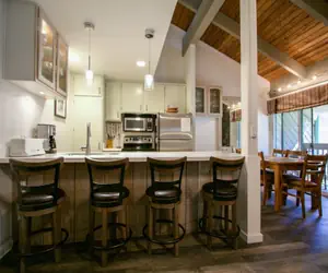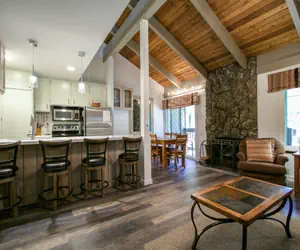 Sunshine Village is conveniently located right down the road from the Vons shopping center and on the free shuttle route. Enjoy a glass of wine with friends and family in the spacious living room complete with cozy pellet stove, flatscreen TV, and WiFi. This 1 bedroom + loft, 2 bathroom sleeps up to 6 people and features a Queen bed in the bedroom, while the loft has a Queen bed as well as a Full bed with bathroom and flatscreen TV. The Sunshine Village complex offers a year-round hot tub, outdoor pool (Summer only), sauna, tennis court and unassigned outdoor parking for 2 cars. NO PETS ALLOWED. All guests receive complimentary full access to Snowcreek Athletic Club to enjoy facilities including indoor heated pool, steam/sauna, full fitness facility, yoga, pilates and cycle studio and more. Guests will be provided two parking passes. If more parking is required than what is allotted, feel free to call our office for alternative options. Our calendar is updated in real time. Please note the strict NO PETS POLICY. (Property Certification #: TOML-CPAN-13965) Unit Code = SSV104
