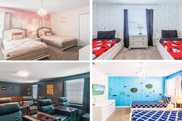 There is plenty of room for everyone to spread out and relax after a day out or just to stay in and take it easy. Each room has a different feel so all guests should be equally happy with their room, and all have wall mounted flat screen LED TVs. The dining room and living area offers plenty of space to congregate and enjoy meals together, and the bright and airy kitchen has all the appliances that you would expect in your own home. (There is also a full-size washer and dryer). You can also enjoy a game of pool in the game room, or watch a movie in the huge loft area, or leave the kids to play on the PlayStation. Or why not take a dip in the large pool or relax in the spa, even in the evening as the pool area is south facing? This home will bring all the excitement of Orlando to you, and have the entire group talking about your trip for months to come.