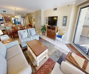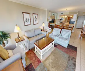 Directly across from the kitchen is a separate bar with its own sink, which makes the perfect location to prepare your favorite beach cocktail. The Living Room has balcony access, a big screen HDTV, a DVD player, and a couch with a Queen Sofa Sleeper.