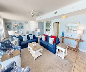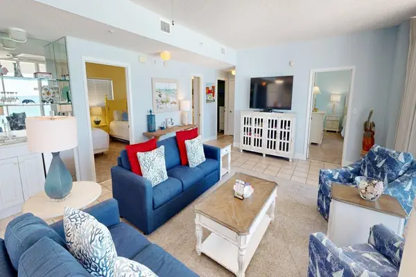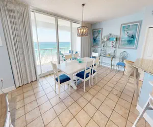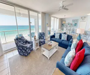 Beachy décor prevails in this spacious 2000 square foot 3BR/3BA Gulf-front condo located at the Oceania condominium. The kitchen is fully furnished with granite countertops, and the large open living room/ dining area featuring new furniture throughout and opens to an enormous balcony overlooking the Gulf of Mexico.