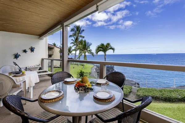 Welcome to Keauhou Kona Surf & Racquet Club, Unit #3-202! This beautiful, DIRECT oceanfront condo is Hawaiian Living at it's finest! Hear the ocean directly from the living room, lanai, and master bedroom. This condo is located on the 2nd floor of building 3. The condo has beach gear available for your convenience, and is fully equipped to help you have the perfect vacation. Enjoy watching TV & Use of Wifi. You will have a spectacular time staying in this beautiful direct oceanfront condo. Newly installed LVP Floors in June 2024!