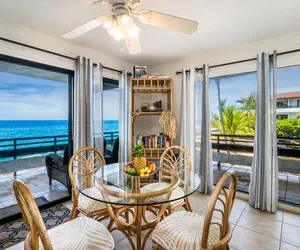This unit has everything you will need to feel like you are royalty: a great big king bed and two twin sized beds. It also has a fully stocked kitchen with a view of the ocean as well. Casa De Emdeko offers owners and guests the perfect blend of Hawaiian ambiance with tropical gardens and the songs of the many colorful birds enjoying the water features in the garden.