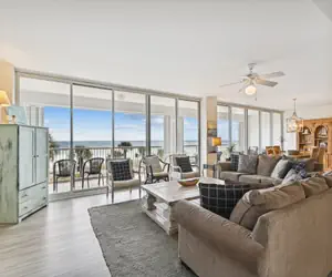 If you are looking for a spacious 3BR/3BA 2000 square foot Gulf-front condo that has an inviting, homey feel, then take a step with me into Oceania 207. Upon entering you will notice the large living and dining area with its floor to ceiling windows and sliding doors offers an unobstructed panoramic view of the gulf and pass and allows access to a spacious balcony. There is no spotty carpet here as this home away from home is strictly tile and rugs. There are four TV’s, 1 DVD player for your entertainment needs.