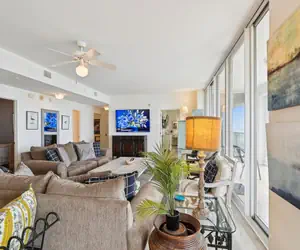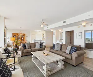 The master bedroom has a large King bed, and the guest bedrooms both have a Queen. The walls are painted a cool light beige with comfortable furnishings to make you feel right at home. The master bath has a double vanity for your convenience and a tub for your relaxation needs. You and your friends and family will not be disappointed with this slice of heaven, Oceania room 207. Condo comes with FREE Beach Service during season - two beach chairs and one umbrella.