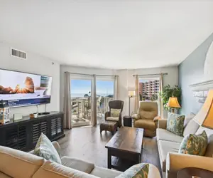 This spacious two bedroom, two bathroom condo sleeps six total guests in contentment and relaxation. The condo comes with a full size washer and dryer, complimentary high speed wireless internet access, and seasonally two chairs and one umbrella set up on the beach for you every day at no extra charge.
