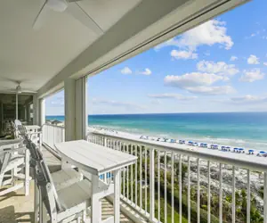 The balcony spans the length of the living and dining area and has seating and ceiling fans to enjoy the views at any time. If you didn't already love this unit from the photos and the view, the unit comes with seasonal beach service!