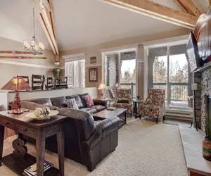 Welcome to 1904 Soda Springs. This beautiful 3 bedroom townhome has been completely renovated with stunning open vaulted ceilings, large windows, granite countertops, and stainless steel appliances. Each piece of furniture has been thoughtfully picked out to draw everything in this home together. Gorgeous, exposed beams give this townhome an authentic cabin appeal. The living room features a large, comfortable leather couch which faces a wall-mounted flat-screen TV. There are extra blankets and plenty of pillows so that you can cozy up by the fire after a long day on the mountain to enjoy a movie with friends and family. Walk out onto the deck to a gorgeous view of the surrounding trees and forest. The large fully equipped kitchen features beautiful granite countertops and stainless steel appliances. In the dining room, gather around the unique all-wood dining table with room for up to eight people.