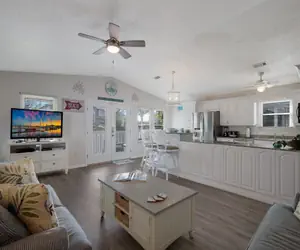 • Newly Renovated Bathrooms and Fabulous New Flooring and updates throughout the whole property! Welcome to Canario Cottage! This beautiful 3-bedroom, 3-bathroom property has 1254 square feet of elevated living space and the ability to accommodate 6 guests very comfortably inside and out. Canario Cottage is large and offers plenty of room for the whole family. Everything is conveniently available on one elevated level. Walk up the stairs to the front entry. There is a lovely, covered patio to take in Island life and have your morning coffee. Make sure to enjoy the open and airy patio off the master suite. Picture yourself catching the sunset sky from either one of the two outdoor elevated porches after a day on the beach!