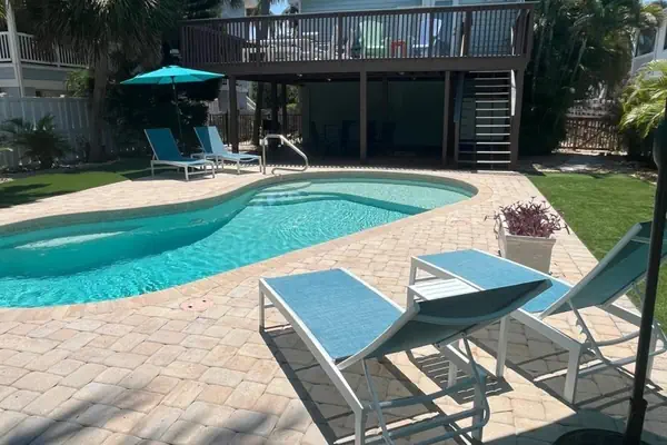 The poolside patio is another great spot to relax and watch the kids swim in the large pool. There is more seating and sun loungers around the pool to make sure you can relax. Enjoy with a cocktail in hand to make this the perfect island getaway! Optional pool heat up to 86 F is available from November to April at $150/week Pools are serviced weekly and debris due to tropical climate might occur in between service days. Pool alarms are mandated per city licensing ordinance.