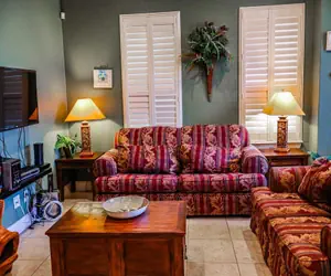 Modern Family Comforts: This 1,021 SF unit features a state-of-the-art kitchen with stainless steel appliances and a spacious master suite with a king-sized bed and direct pool access. This unit sleeps 6. The living area is open and spacious with a couch that can be made into a queen size bed.