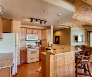 • This stunning two-bedroom condo is wonderfully decorated to give you that rustic, western feel. The unit overlooks the ski slopes, with an outstanding view of the unique peak of Mt. Crested Butte. The kitchen is well-appointed with modern appliances. Enjoy the wood burning fireplace in the spacious living room, while watching your favorite sports and shows on the large flat screen TV. The deck offers more amazing views, with the addition of a propane grill for barbecuing. Both bedrooms are stylish and offer their own flat screen TVs as well. The unit also offers a washer and dryer, so your clothes can stay fresh throughout your vacation. With a single king bed in the master bedroom, two twins in the guest bedroom and a double sleeper sofa, this condo is perfect for couples or small families, as it sleeps up to 6 comfortably.